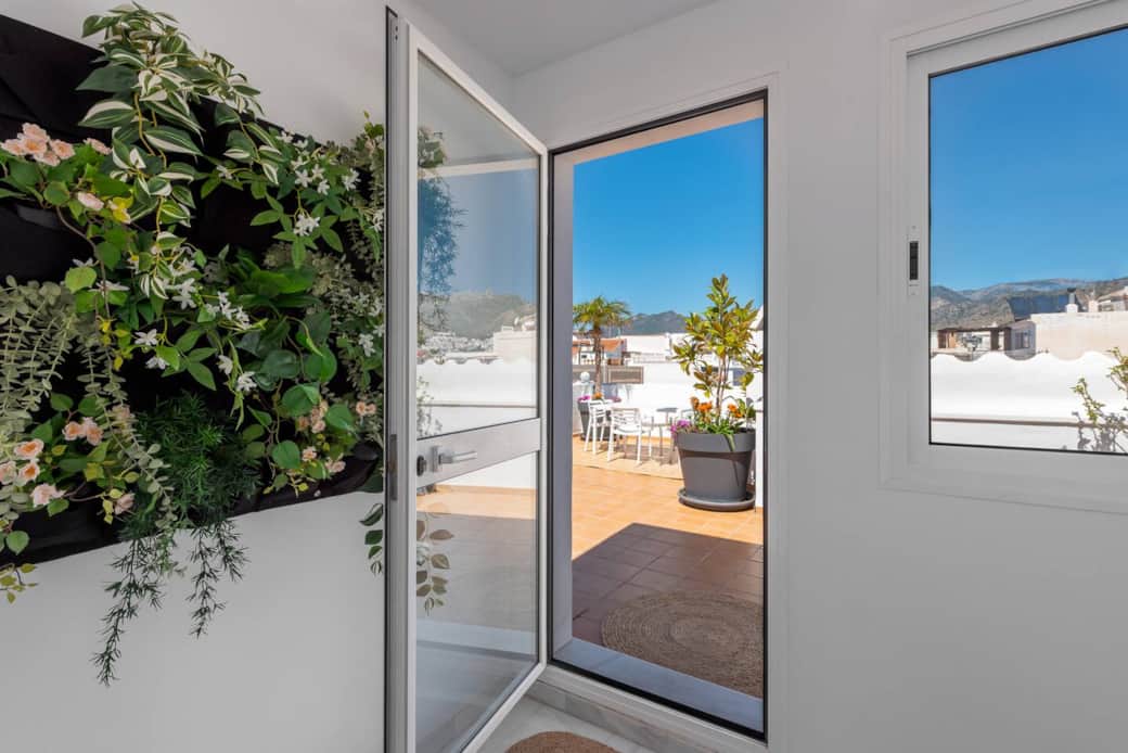 Terrazas soleadas con impresionantes vistas panorámicas 360° a Nerja, el mar Mediterráneo y la montaña